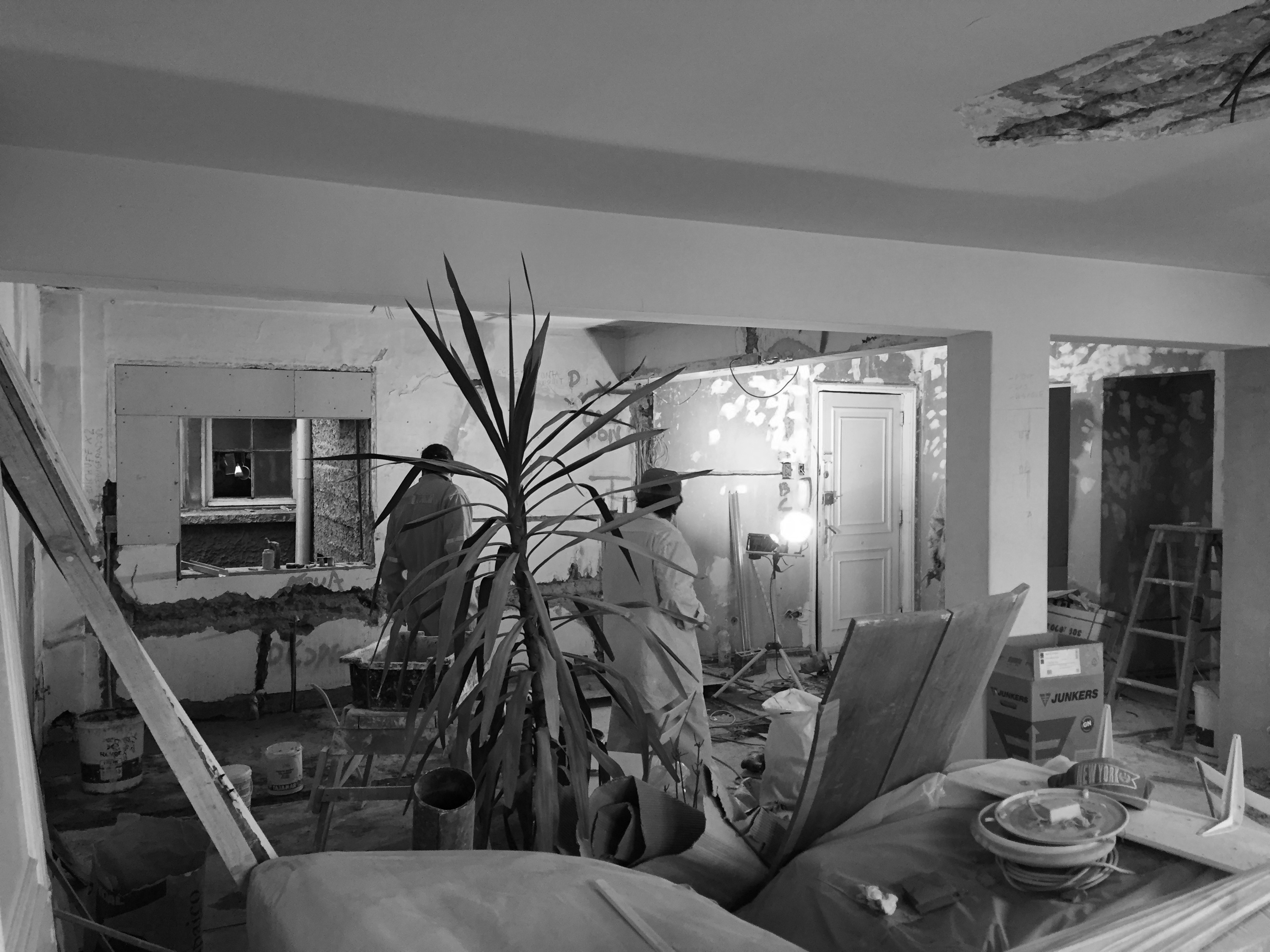 Ubicado en el último piso de un edificio de la década del 50 en un barrio de fachada continua, la reforma de este departamento actualiza el comedor y la cocina a las necesidades del presente, replanteando el pensamiento original que definió estos espacios: una cocina pequeña y aislada del resto del departamento, pensada para el servicio “oculto” y un comedor compacto al modo de un dining alcove o dinette, reflejan las innovaciones que el mercado inmobiliario de la época proponía para ahorrar superficie. La propuesta elimina las divisiones entre estos recintos dejando expuestos la estructura y un espacio de uso familiar totalmente abierto.